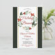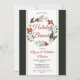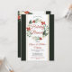 Basta ver os detalhes de suas celebrações para completar esta bonito espiral verde e vermelha de flores e bagas de Natal, Holiday Brunch design sobre um painel branco com faixas de borda de ouro mudas em um fundo verde escuro. A parte traseira apresenta um bouquetin floral coordenado em cantos opostos (superior esquerdo e inferior direito). Estilo simples e moderno que certamente impressionará seus destinatários.