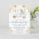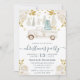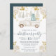 Elegante Aquarela Palha Floral Dourada de inverno design com caminhão branco, boneco de neve, flocos de neve dourados e flores brancas e douradas