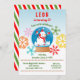 Esta design moderna é perfeita para um inverno, Natal ou festa de aniversário de dezembro. Você pode escolher entre quatro personagens amados pelo Natal: Papai Noel, Rudolph, Homem de Neve ou O Urso Polar, e um globo de neve com o mesmo design de Neve. O boneco de neve acende um dentro de cana-de-açúcar por globo com uma paisagem de inverno. Ele está vestindo uma roupa tipo Papai Noel! Este é um clássico e evocativo objeto de inverno e Natal. Flocos de neve coloridos estão no ar. Parece festivo! O verso deste convite tem listras em verde, branco e vermelho. O texto neste convite de aniversário é fácil de personalizar com seus detalhes. Este é apenas um exemplo: o nome da criança usa uma fonte que tem neve nela, mas você pode escolher outra se quiser ou outra cor.