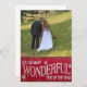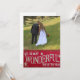 Um antigo sinal vermelho e branco com decoração em flocos de neve declara que é a época mais maravilhosa do ano neste Cartões de foto de Natal. Sua própria fotografia leva o palco central no topo. A parte traseira do cartão tem três campos para seu texto personalizado e sua mensagem pessoal.