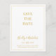 Este simples cartão postal de Natal branco para salvar a data é perfeito para o seu casamento de inverno minimalista moderno. A clássica caligrafia de luxo em dourado, juntamente com o fundo branco tradicional, tudo delimitado por uma moldura minimalista, certamente irá completar a vibrante atmosfera de feriado que você está procurando. Você pode personalizar com suas próprias fotos ou gráficos ou mantê-lo como está. Certifique-se de olhar o resto da coleção para completar o tema do seu casamento!