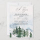 Selvagem A Aventura Começa o Convite ao Chá de fraldas Cena de Pinheiros Atmosféricos de inverno A aventura inicia o convite ao chá de fraldas. Esta design também mostra um "oh boy" indo, um coração e um padrão listrado azul no verso. Excelente para o chá de fraldas de inverno de um menino.