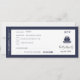 Bilhete de casamento do cartão azul de embarque de Elegante marinho com um fundo de marinho básico, ideal para um casamento de navio de cruzeiro.