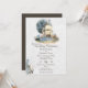 Este convite náutico de casamento por aquarela apresenta um belo navio com velas e âncora velejando em frente a uma lua de cheio com ondas e rochas contra um fundo texturizado de falso branco. -
