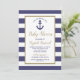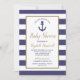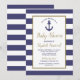 Convite Nautical Anchor Navy Blue Striped Boy Baby Shower