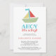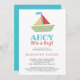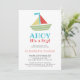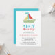 O chá de fraldas "Ahoy it's a Boy", com estilo retrorativo, de um navio náutico colorido de náutica, chamado "Ahoy it's a Boy", em azul-lacre vibrante e vermelho.