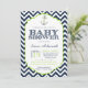 Ahoy! Convite náutico bonito do chá de fraldas com grande teste padrão da viga, e elementos da navigação. Âncora e corda náutica. Faça uma indicação com este design!!