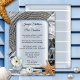 Um chic boêmico após o casamento ou o convite para o casamento poste com um design azul empoeirado com imagens náuticas como cordas, praia, conchas, âncora e estrelas-do-mar. Bonita para uma recepção só ou para uma celebração pós-casamento.