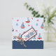 Doces cartões de aniversário de tema náutico com veleiros, caranguejos e âncoras para o terceiro aniversário. O efeito 3D gêmeo e etiqueta.