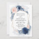 Convite Navy Blue Floral Dusty Budget QR Code Wedding
