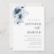 Convite Navy Blue Floral Minimal Plain All in One Wedding