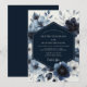 An enchanting display of deep navy blue blossoms and delicate foliage creates a dramatic and romantic atmosphere. This design evokes a sense of sophisticated charm, perfect for an elegant affair. The prominent floral elements suggest a moody yet alluring aesthetic.