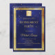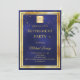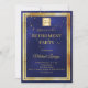 Celebrate the special milestone with this elegant retirement party invitation. Featuring a rich navy blue background with an uneven texture, this design is highlighted by a faux gold frame and golden confetti sprinkles. The golden-colored lettering adds a touch of sophistication, making it perfect for the occasion. Personalize it by adding your business logo, the retiree's name and all your party details to create a truly unique invitation. Available in various paper types and formats, this invitation sets the tone for a memorable celebration.