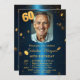 Convite Navy Blue Gold Glitter Photo 60th Birthday Party