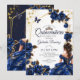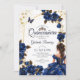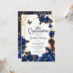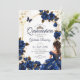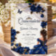 Convite Navy Blue Golden Tiara Roses Quinceañera