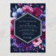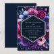 This dark and dramatic design showcases a deep navy blue backdrop adorned with a rich array of botanical elements. Vibrant fuchsia roses and deep purple anemones bloom with painterly detail, creating an opulent and romantic aesthetic. The contrast between the midnight tones and the vivid magenta petals evokes a sophisticated and mysterious atmosphere.