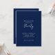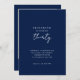 Celebrate in style with this elegant minimalist 30th birthday invitation featuring a clean navy blue background, modern typography, and a handwritten script accent. The back includes space for a personal photo, adding a unique and personal touch to your milestone celebration. Perfect for a chic, modern birthday party.