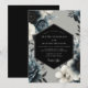 This design features a dark and atmospheric aesthetic perfect for a formal winter event. A lush arrangement of deep navy roses and charcoal-toned peonies creates a moody botanical backdrop. Delicate ivory anemones provide a striking contrast against the midnight shadows. It evokes a sense of mystery and timeless elegance for an evening affair.