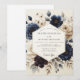 Embrace a dramatic and romantic atmosphere with this elegant design. A sophisticated color scheme of deep navy blue, soft cream, and muted taupe sets a moody tone. Lush, painterly anemones and roses bloom alongside delicate, dusty foliage, creating a composition of timeless elegance for your special day.
