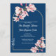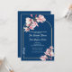 Convite Navy Blue Pink Magnolia Elegant Floral Wedding