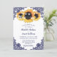 Convite Navy Blue Sunflower Floral Lace Rustic Wedding