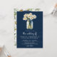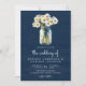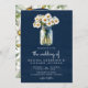 Convite Navy Blue Wood Daisies Mason Jar QR Code Wedding