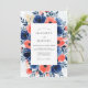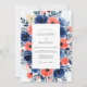 A vibrant display of painterly blue and coral blooms evokes a romantic, artistic atmosphere. Lush green foliage frames the central motif, creating a striking, enchanting feel. This design radiates a mood of sophisticated charm.