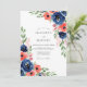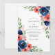 This design features a vibrant watercolor arrangement of navy blue and coral blooms with delicate green foliage. The artistic floral accents create a romantic and lively atmosphere. Perfect for a naturalistic and elegant affair.