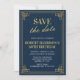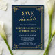 Anuncie a celebração do seu marco com este elegante Save the Date Art Déco em Azul Marinho e Dourado. Perfeito para um aniversário de 80 anos, este design sofisticado combina o anúncio e os detalhes do evento em um cartão prestigioso. Fácil de personalizar para o seu dia especial. ✨