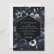Deep navy blooms and rich foliage create a dramatic, opulent backdrop. This design evokes a feeling of sophisticated romance with its lush, dark floral arrangement. Features hints of white flowers for striking contrast.