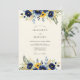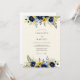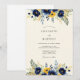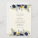 This design features a rich arrangement of navy blue anemones and golden yellow poppies set against a creamy backdrop. Watercolor greenery and dusty blue foliage provide a balanced and polished aesthetic. The vibrant color palette offers a sophisticated yet cheerful mood, perfect for a high-end seasonal event. Painterly textures and delicate botanical details provide an artistic touch.