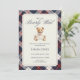 This navy plaid teddy bear baby shower invitation features a charming teddy bear illustration paired with a bold yet classic plaid frame. Designed especially for a baby boy shower, it blends traditional Americana style with a cozy, timeless feel. Perfect for fall or winter baby showers, classic boy themes, or teddy bear nursery décor–inspired celebrations.