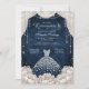 Convite Navy White Diamond Floral Quinceanera Invitation