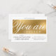 Crie convites profissionais para negócios para seu evento com este moderno convite de festas de empresas branco e ouro. Você pode editar todo o texto, adicionar o logotipo e os detalhes do evento para criar convites para o na moda para sua festa de lançamento, noite de gala, janto de arrecadação de fundos ou qualquer outro evento corporativo. A fonte do script de tendência escreve 'você é convidado' e o fundo do efeito ouro falso adiciona uma sensação de luxo extra a esses convites da empresa.