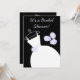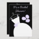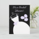 chá de panela bonito com um vestido estilizado de casamento e flores em tons de roxo e branco sobre fundo preto, e texto branco e roxo. Um design personalizável para você personalizar com seu próprio texto, imagens e ideias.