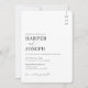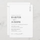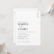 Aceite a essência da sofisticação com nossos Simples e Elegante Black All In One QR Code Wedding Invtions. Criados com um design minimalista, esses convites combinam a conveniência moderna e o estilo clássico, apresentando caligrafia negra nítida em um fundo branco limpo. A inclusão de um código QR conecta seus convidados facilmente a RSVPs on-line, garantindo uma experiência perfeita. Perfeito para qualquer estação — desde o florescimento fresco do primavera até o confortável ambiente do outono — esses convites são projetados para impressionar enquanto são econômicos. Ideal para o casal na moda que busca uma mistura de elegância tradicional e talento contemporâneo, nossos convites deram o tom para uma celebração memorável.