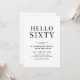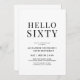 Comemore um marco em estilo com este moderno convite de 60 anos a preto e branco. Apresentando uma manchete ousada de "Olá 60", tipografia limpa, e um design minimalista, é perfeito para dar o tom para uma elegante, mas divertida celebração. Ideal para jantas, coquetéis ou encontros íntimos, este convite facilita a partilha dos detalhes do seu evento especial com familiares e amigos.