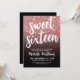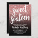 Convite Negra Rosa com brilho Dourado 16.º aniversário