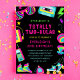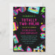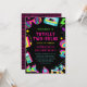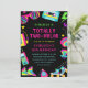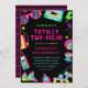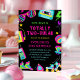 Este convite de aniversário divertido e colorido apresenta designs da década de 80 (óculos escuros, cassetes, telefone, skates de rolo e muito mais)! As cores do néon (cor-de-rosa magenta, amarelo, verde limão, aqua e roxo) realmente fazem este convite pop! 80 estilhaçados de tipografia dizem, "Totalmente bular". Perfeito por ter jogado uma segunda festa de aniversário do tema dos anos 80 para a sua garotinha! A parte traseira contém um padrão de fio de telefone em cor-de-rosa magenta. A cor de fundo e a maioria das cores de texto podem ser personalizadas, se desejado.