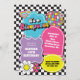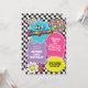 Concurso de aniversário para soneca de Neon 90 com corações, margaridas, bola de disco e fundo de damas.