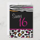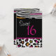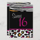 Este convite para a impressão de animais brilhantes, com manchas neon-leopardo e listras zebra, é perfeito para qualquer Sweet 16.