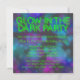 O sinal azul e neon verde colorido brilha no convite de aniversário escuro.