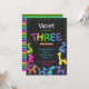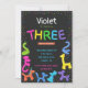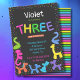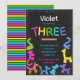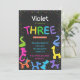 aniversário de 3 anos neon cores bálons animais convite