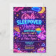 Convite Neon Glow Girls Sleepover Party Night Slumber