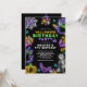 Garotas Neon Halloween 5, Convite de festas de Figurino de aniversário. Prepare-se para uma diversão de aniversário assustadora com este convite de aniversário de crianças neon Halloween com esqueleto de neon, abóbora, gato preto, bruxa malvada, teia de aranhas e morcegos. Por uma garota que fez 5 anos!