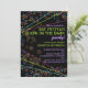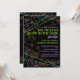 Luzes de neon e feixes de laser decoram este divertido convite de festas de brilhar na festa temática da luz escura / preta. Com texto de verde limão brilhante e roxo neon, cada linha pode ser personalizada para o seu evento.
