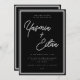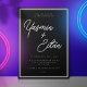 Faça seu casamento atordoante com estes convites legal de Jessica Amber. Esta placa apresenta o script de néon branco para os nomes de casais casados. A inscrição branca moderna estabelece os pormenores do casamento, incluindo a localização, a data e a hora. Na parte de trás está um código QR que pode vincular ao seu site de casamento, onde o pessoas pode RSVP. As palavras brilhantes se destacam contra um fundo negro. Excelente para um casamento em Vegas! Procure na minha coleção o pacote correspondente. ・ ・ ・ Para mais suites de casamento, visite minha loja Zazzle.com/EventsByJessicaAmber ・ ・ ・ Para pedidos personalizados, envie-me uma mensagem no Zazzle