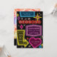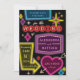 Inspirado pelos sinais icônicos de neon da velha hora de Las Vegas, este casamento de destino, salvo a data, é um nod colorido e divertido para a história e dá aos seus convidados uma sensação daquela nostálgica vibe noturna de Vegas. Não se esqueça de personalizar as costas com sua foto de noivado e o URL do site de casamento.