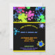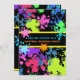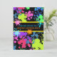 Convite de festas de pintura de pintura fina brilhante com cores brilhantes de verde, amarelo, roxo, rosa, laranja e vermelho.