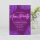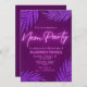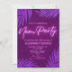 Convite minimalista com luzes de neon e o título para dar ao convite um visual tentador com violeta escuro no fundo com folhas tropicais cintilantes combinando